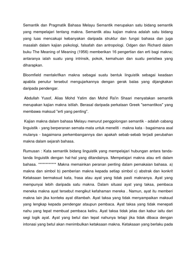 Semantik Dan Pragmatik Bahasa Melayu Semantik Merupakan Satu Bidang Semantik Yang Mempelajari Tentang Makna