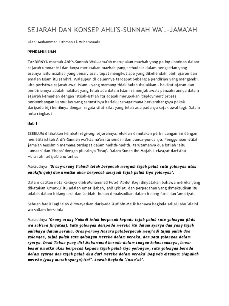 Sejarah Dan Konsep Ahli Sunnah Wal Jamaah