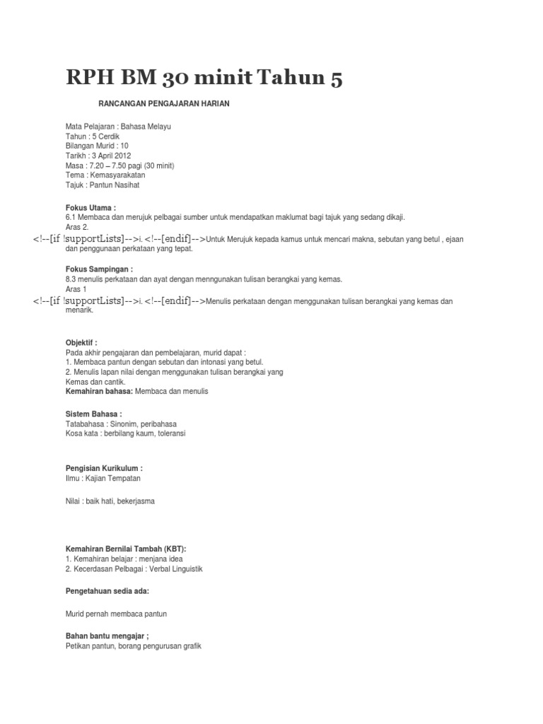 Pdf Rph Bahasa Melayu Tahun 5 Sistem Guru Online Academia Edu
