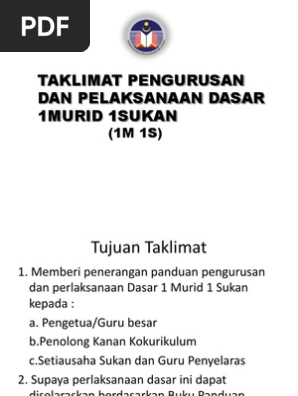 Kertas Cadangan Kem 1 Murid 1 Sukan