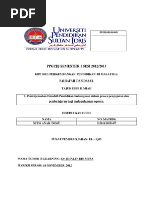 Kpf 3012 Perkembangan Pendidikan Di Malaysia Falsafah Dan Dasar Esei Ilmiah