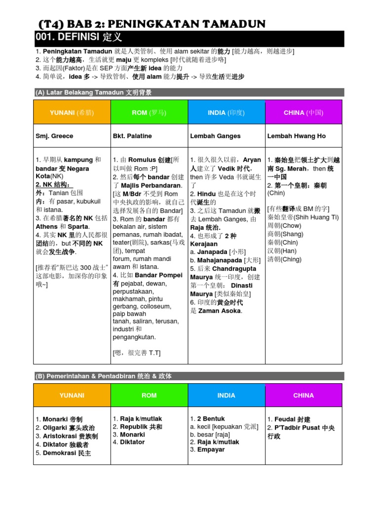 Nota Sejarah Tingkatan 4 Bab 2 Peningkatan Tamadun