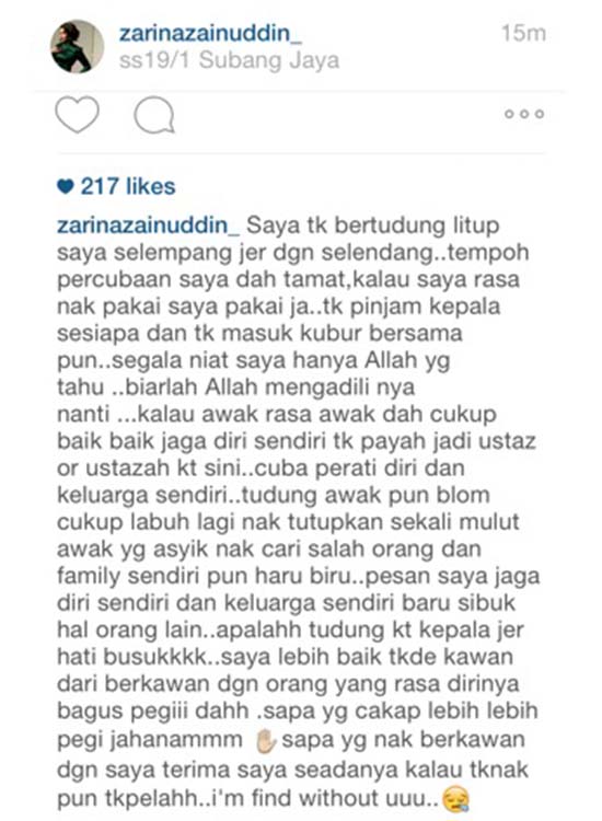 Zarina Zainuddin Komen Isu Berhijab