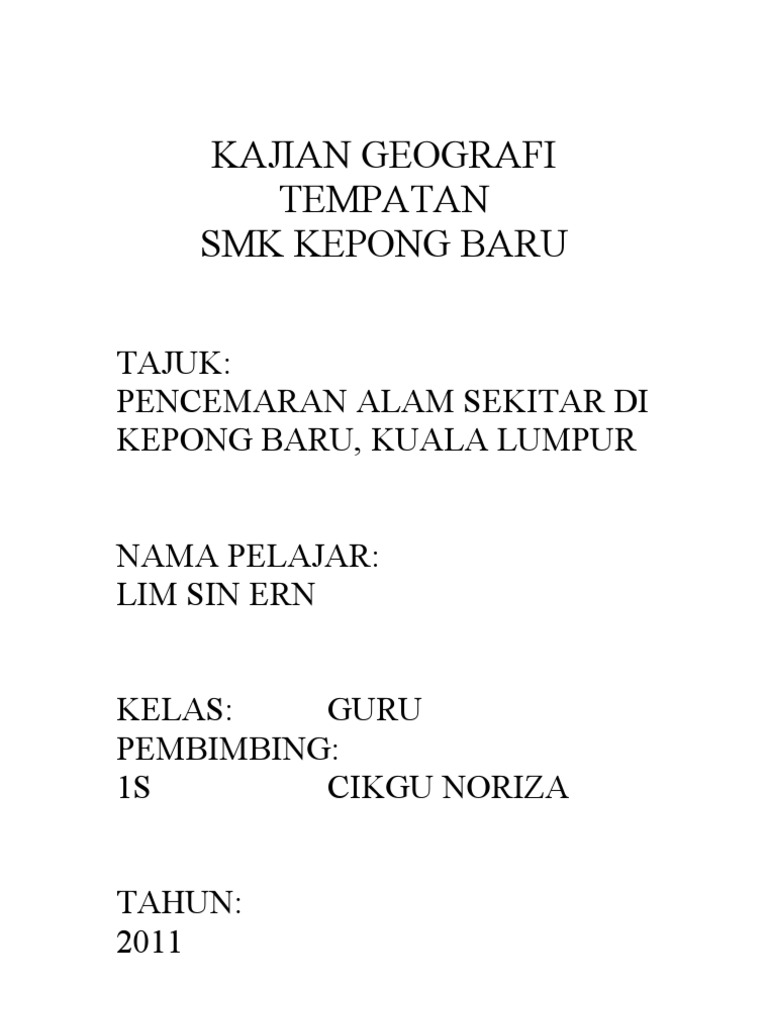 Kajian Geografi Tempatan Smk Kepong Baru Tajuk Pencemaran Alam Sekitar Di Kepong Baru Kuala Lumpur