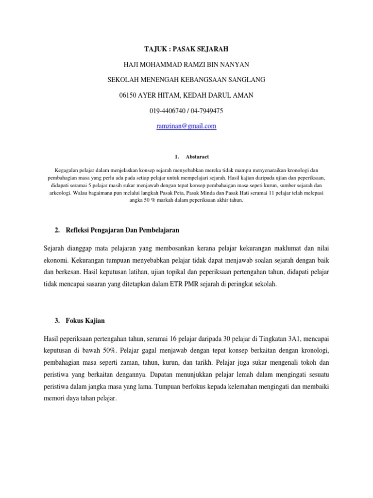 Contoh Kajian Tindakan Pasak Sejarah Oleh Mohammad Ramzi Bin Nanyan 2011