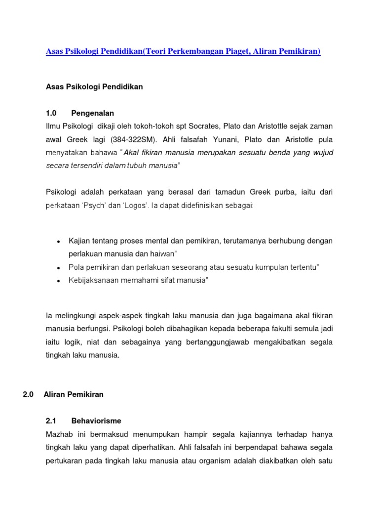 Asas Psikologi Pendidikan Teori Perkembangan Piaget Aliran Pemikiran