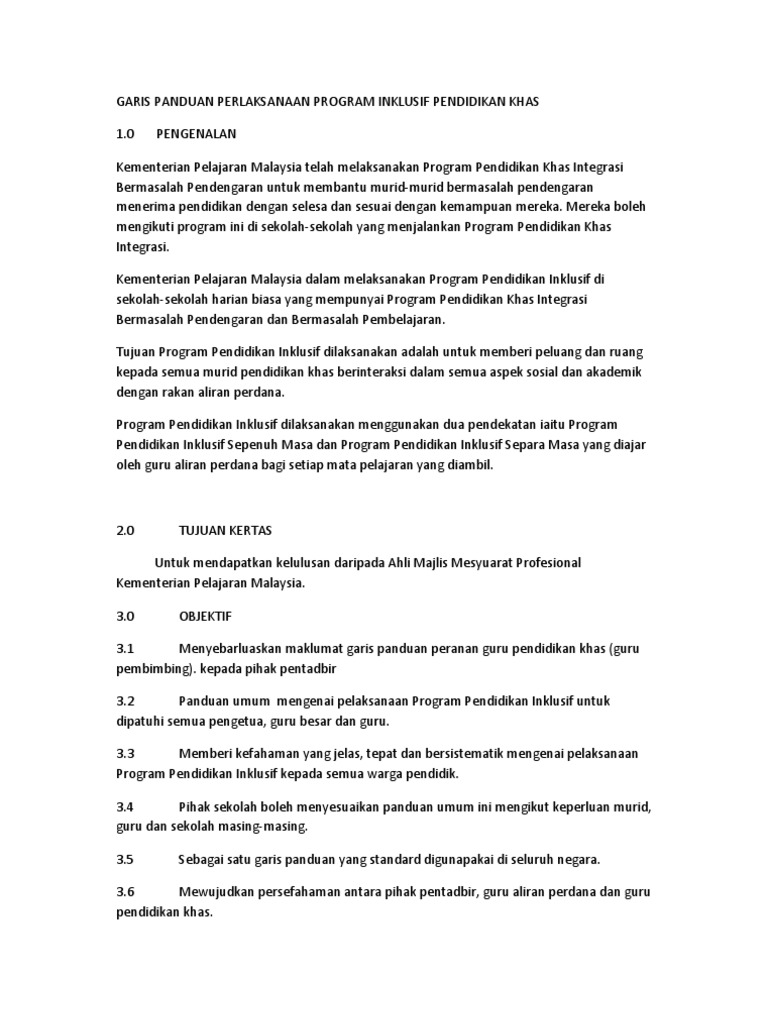 Doc Pendidikan Inklusif Pendidikan Khas Sk Tunjang Academia Edu