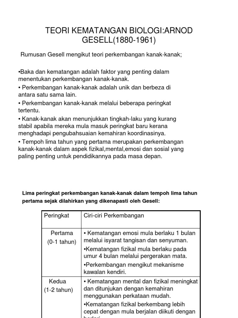 Peringkat perkembangan fizikal kanak kanak. Secara ringkas pertumbuhan dan perkembangan kanak kanak melalui peringkat peringkat seperti berikut. Teori perkembangan fizikal kanak kanak teori kematangan arnoll gessell arnoll gesell berpendapat perkembangan kanak kanak adalah mengikut pola pola tertentu. Pada peringkat ini pertumbuhan fizikal perlahan jika dibanding dengan pertumbuhan pada tahun pertama kanak kanak tersebut. Mula mengenal objek dalam alam sekitar melalui organ deria dan tangan.