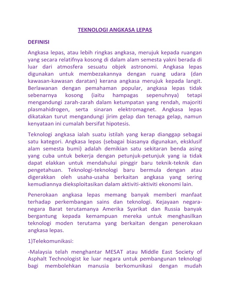 Stesen angkasa antarabangsa iss ialah sebuah stesen penyelidikan antarabangsa dengan ketinggian 360 km dari permukaan bumi. Kejayaan negara negara barat terutamanya amerika syarikat dan russia banyak bergantung kepada kemampuan mereka untuk menghasilkan teknologi moden terutama yang berkaitan dengan penerokaan angkasa lepas. Perkembangan dalam penerokaan angkasa lepas 1. Roket telah digunakan sejak dahulu lagi tetapi tidak digunakan untuk tujuan meneroka angkasa lepas sehingga ahli astronomi mencadangkan penggunaan roket untuk ke angkasa lepas.