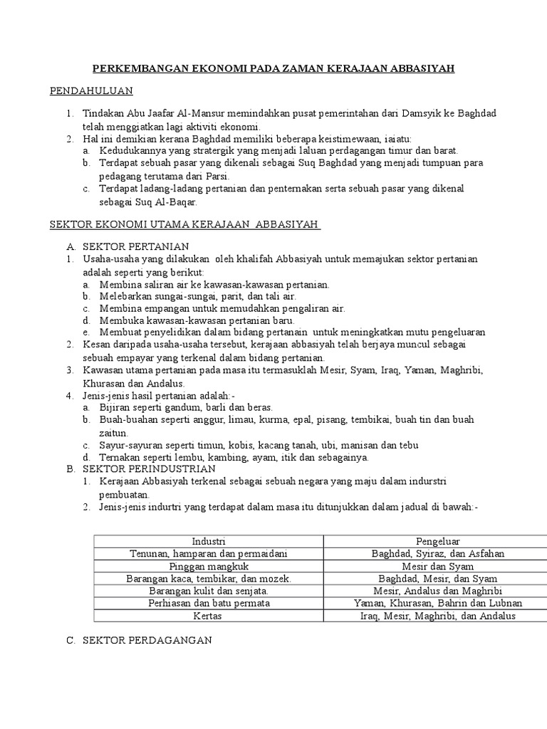 Perkembangan Ekonomi Pada Zaman Kerajaan Abbasiyah Tingkatan 5