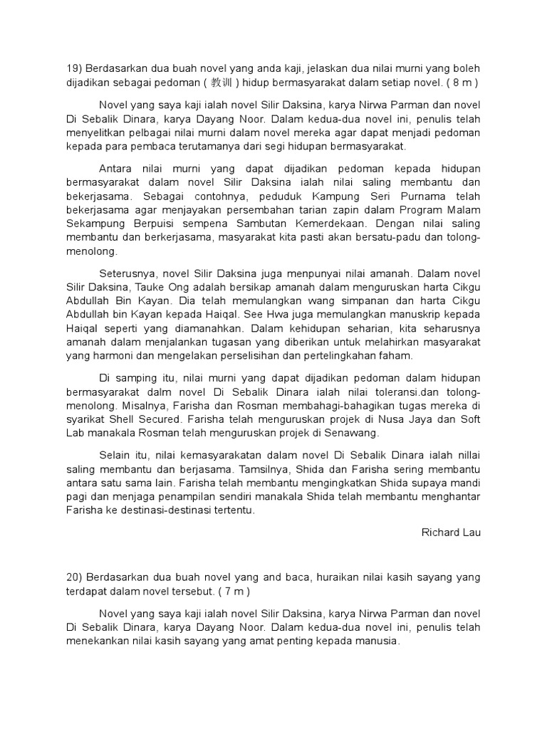Contoh Soalan Novel Spm Di Sebalik Dinara Resepi Book R