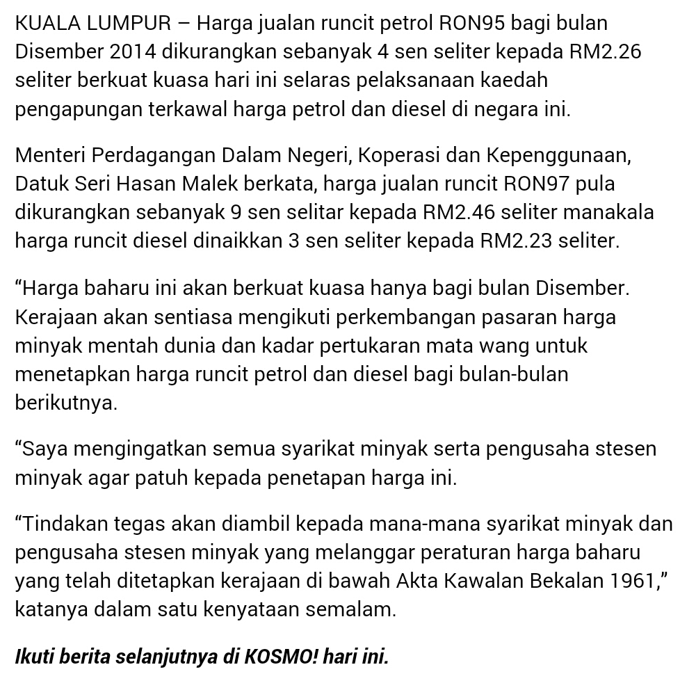 Ron95 Ron97 Turun 3 Sen Diesel Turun 5 Sen Mykmu Net