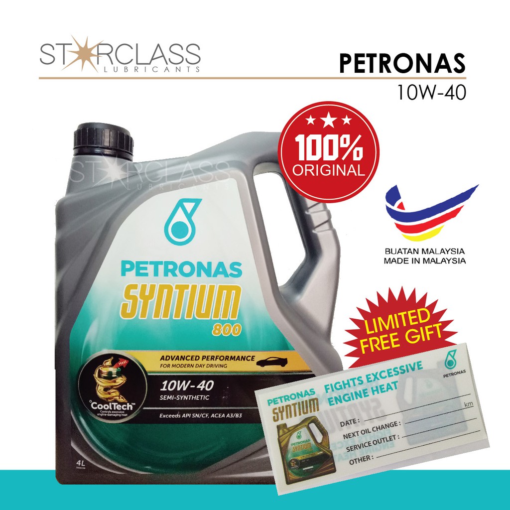 100 Original Petronas Syntium 800 10w40 Sn Cf Semi Synthetic 4l Engine Oil 10w 40 Free Windshield Mileage Shopee Malaysia