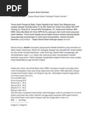 Punca Dan Cara Mengatasi Masalah Obesiti Karangan Pelajar Stpm