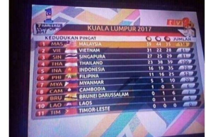 Mykmu Net Kedudukan Terkini Pungutan Pingat Sukan Sea 2017 فيسبوك