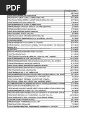 Nama Pertubuhan Tarikh Daftar