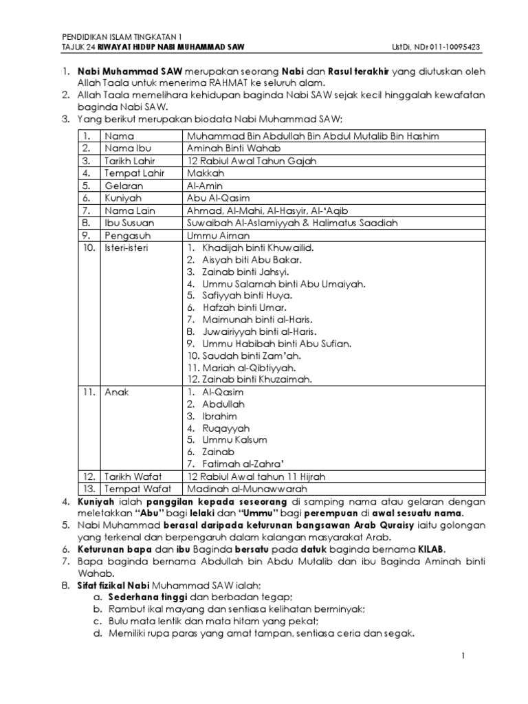 Pendidikan Islam Tingkatan 1 Tajuk 24 Riwayat Hidup Nabi Muhammad Saw Ustdi Ndr 011 10095423