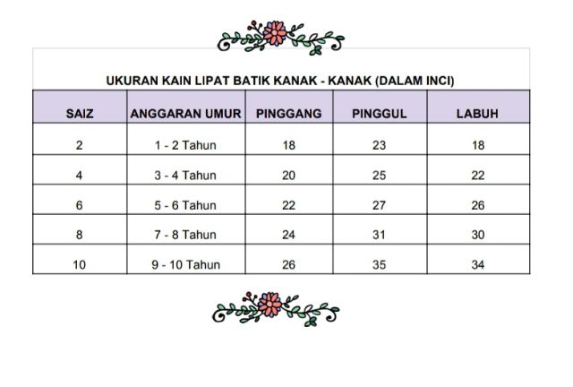 Ukuran Baju Budak Sewing Measurements Clothes Sewing Patterns Kids Patterns