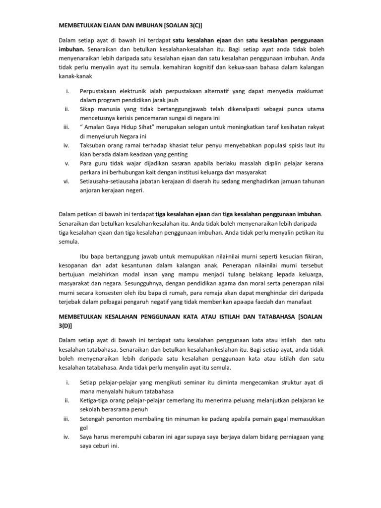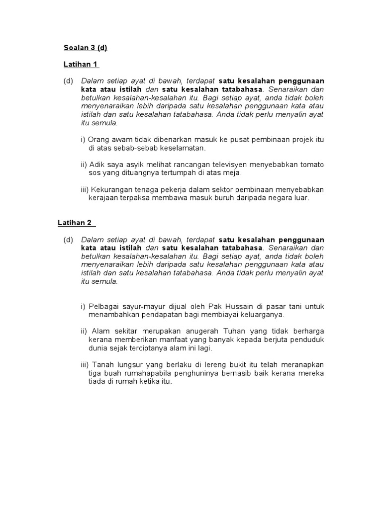 Laman Bahasa Melayu Spm Soalan Dan Cadangan Jawapan Soalan 3 D Mengesan Kesalahan Kata Dan Kesalahan Tatabahasa Peperiksaan Percubaan Sbp