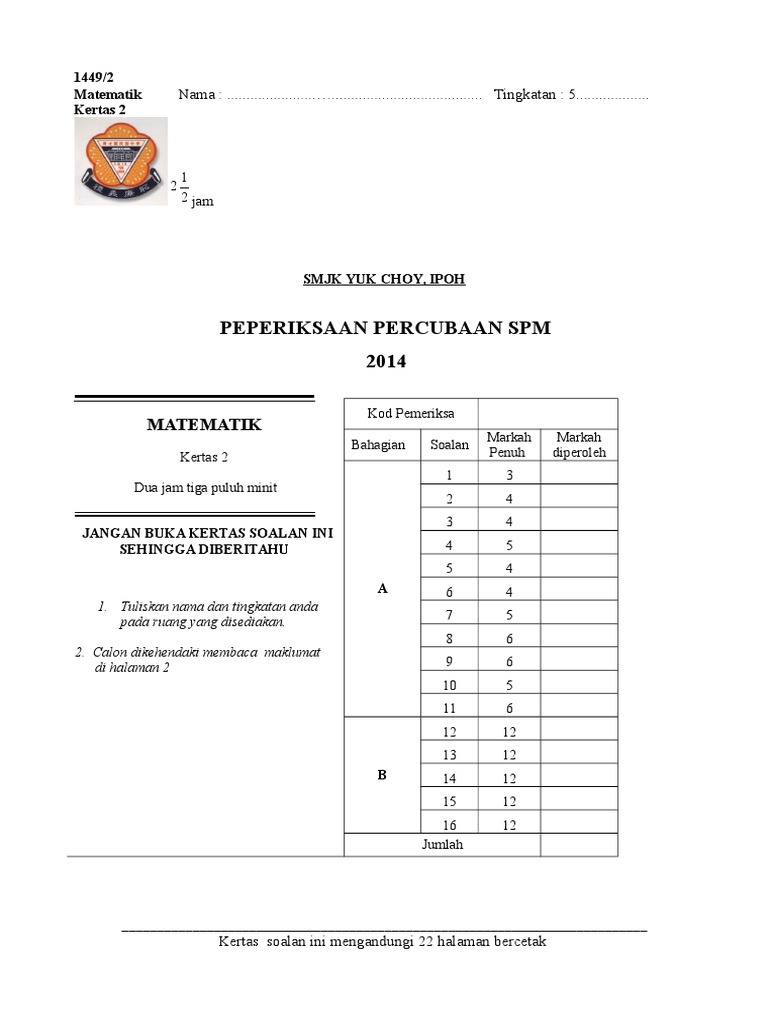 Spmsoalan Soalan Spm 2014 Matematik Kertas 2 Pdf Document