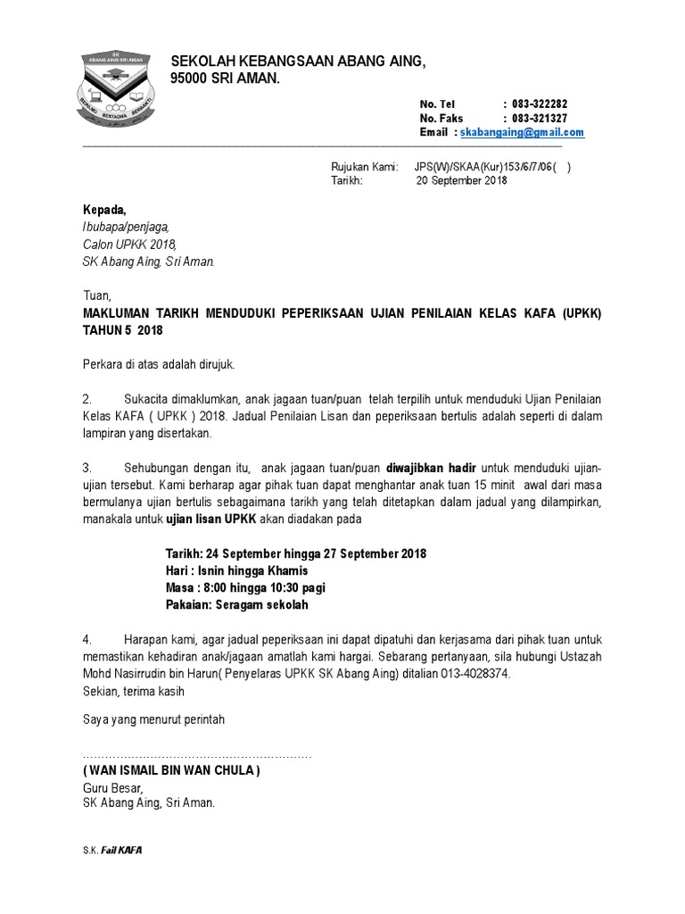 Contoh Soalan Upkk Surat Rasmi U